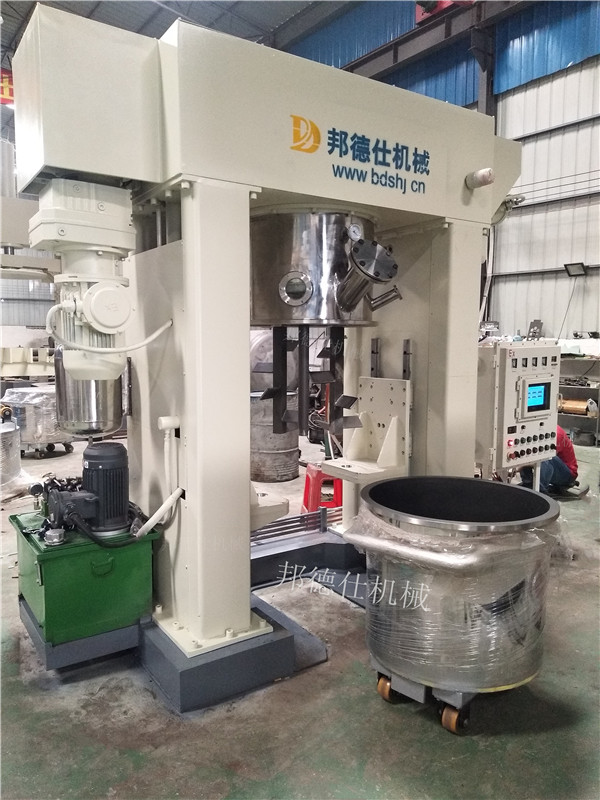 龍門架式行星動(dòng)力混合機(jī)/多功能行星攪拌機(jī)是一種無(wú)死點(diǎn)的混合、攪拌、分散設(shè)備。此設(shè)備集行星機(jī)、強(qiáng)力分散機(jī)功能于一體,采用獨(dú)特?cái)嚢铏C(jī)構(gòu),下料桶固定不動(dòng);分散盤、攪拌槳實(shí)現(xiàn)既公轉(zhuǎn)又自轉(zhuǎn)的行星運(yùn)動(dòng),其速度可調(diào)頻變速。使物料作復(fù)雜運(yùn)動(dòng),受到強(qiáng)烈的剪切、攪拌和搓合,物料得以充分混合和破碎。在釜內(nèi)設(shè)計(jì)了自動(dòng)刮壁、刮底結(jié)構(gòu),將粘附著釜壁上的物料刮下繼續(xù)混合,不會(huì)出現(xiàn)混合死角。設(shè)備密封獨(dú)特,可加壓或抽真空去氣泡等。您可以提出您所需要的處理量、設(shè)備形式、規(guī)格要求或您需要加工的物料的性質(zhì),邦德仕的銷售工程師會(huì)提供讓您滿意的方案。